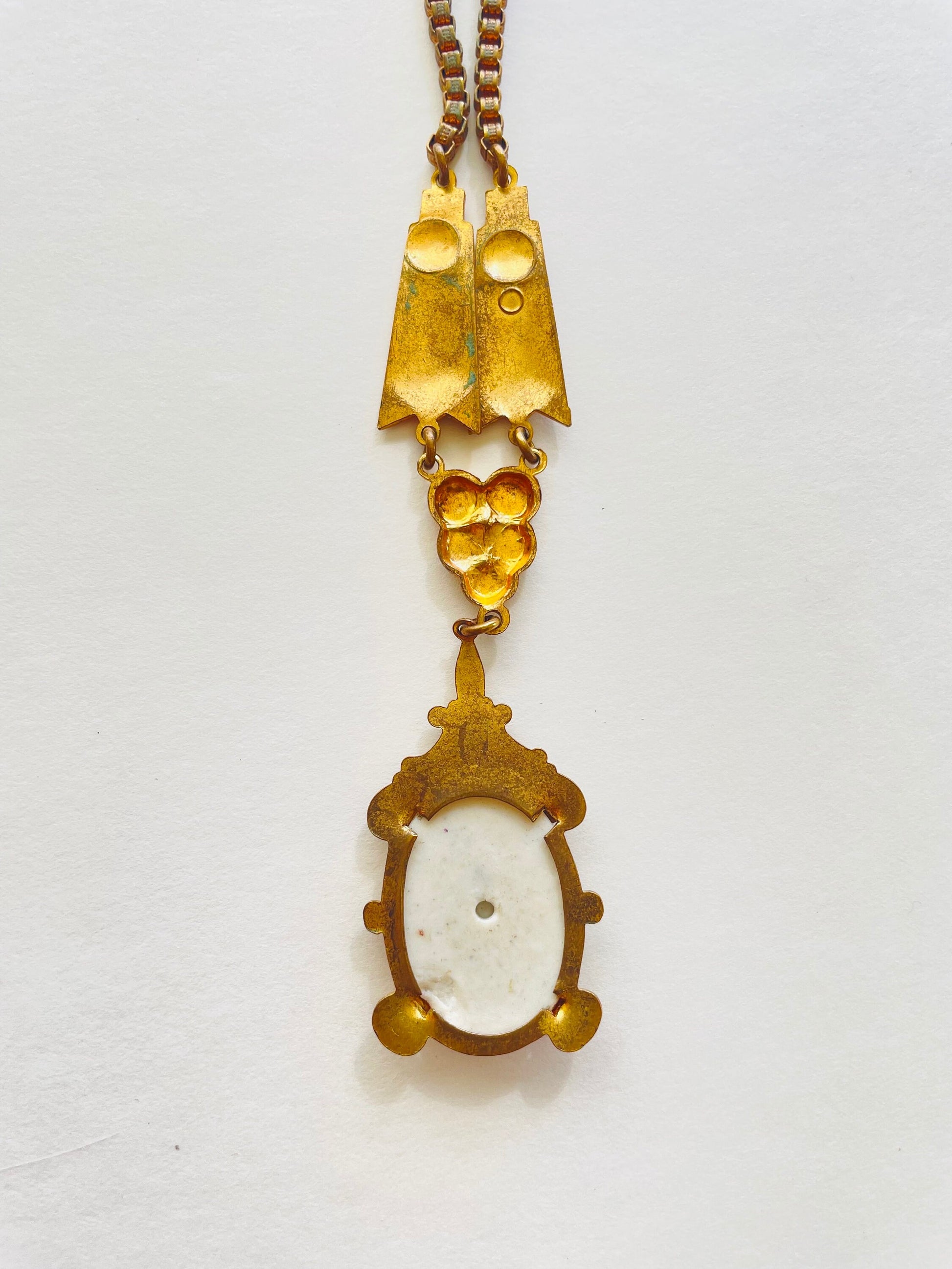 1920s Antique Porcelain Pendant Necklace | 20s Porcelain Victorian Couples Necklace | Book Chain Necklace