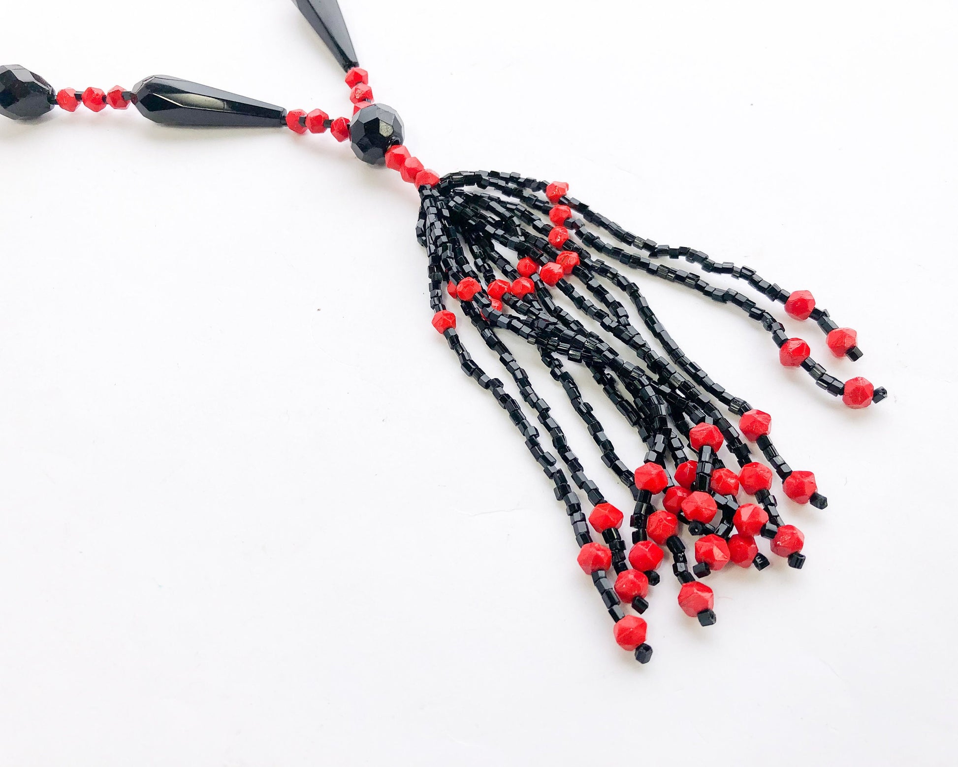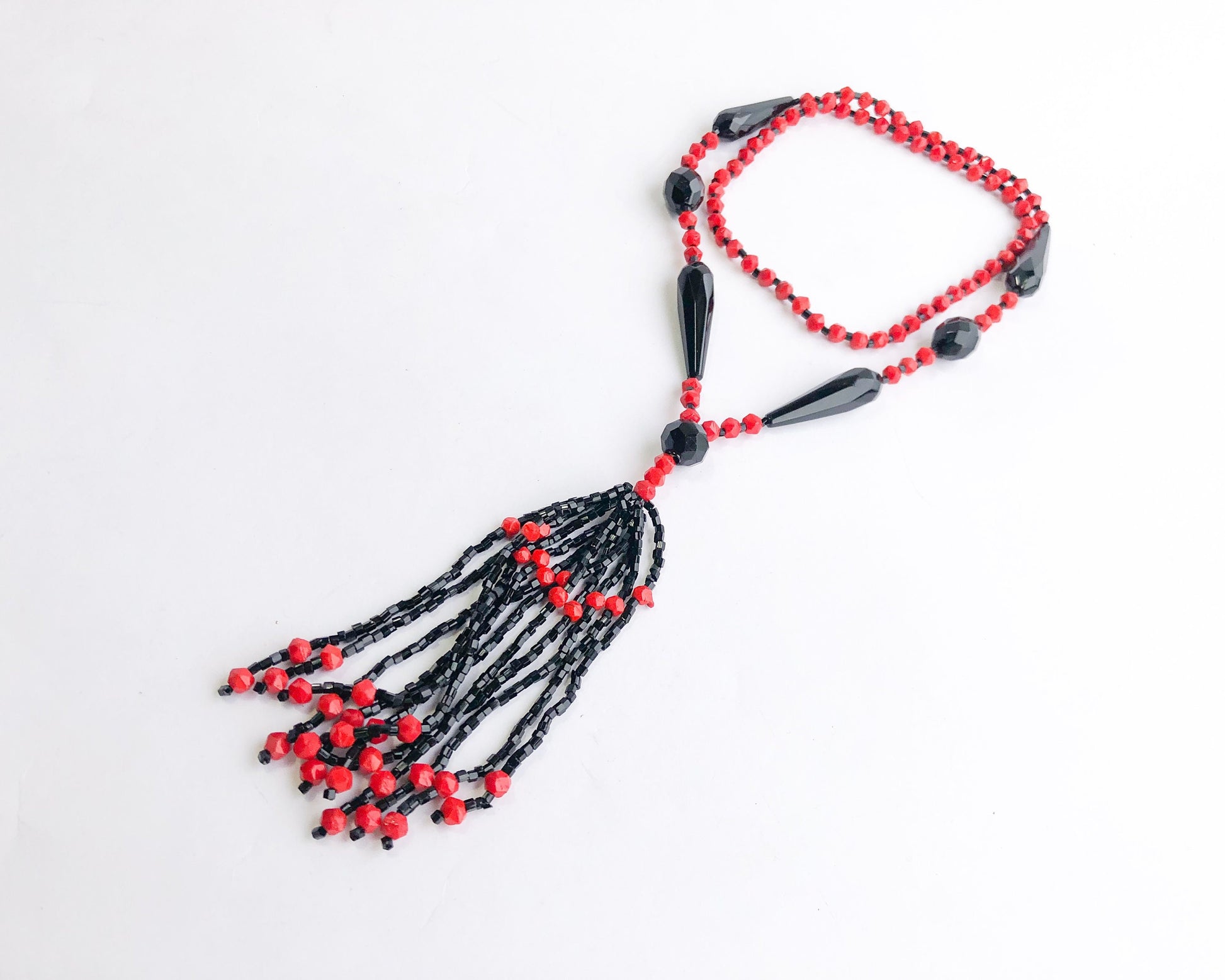 1920s Red & Black Beaded Necklace | 20s Beaded Rope Necklace | Flapper Necklace