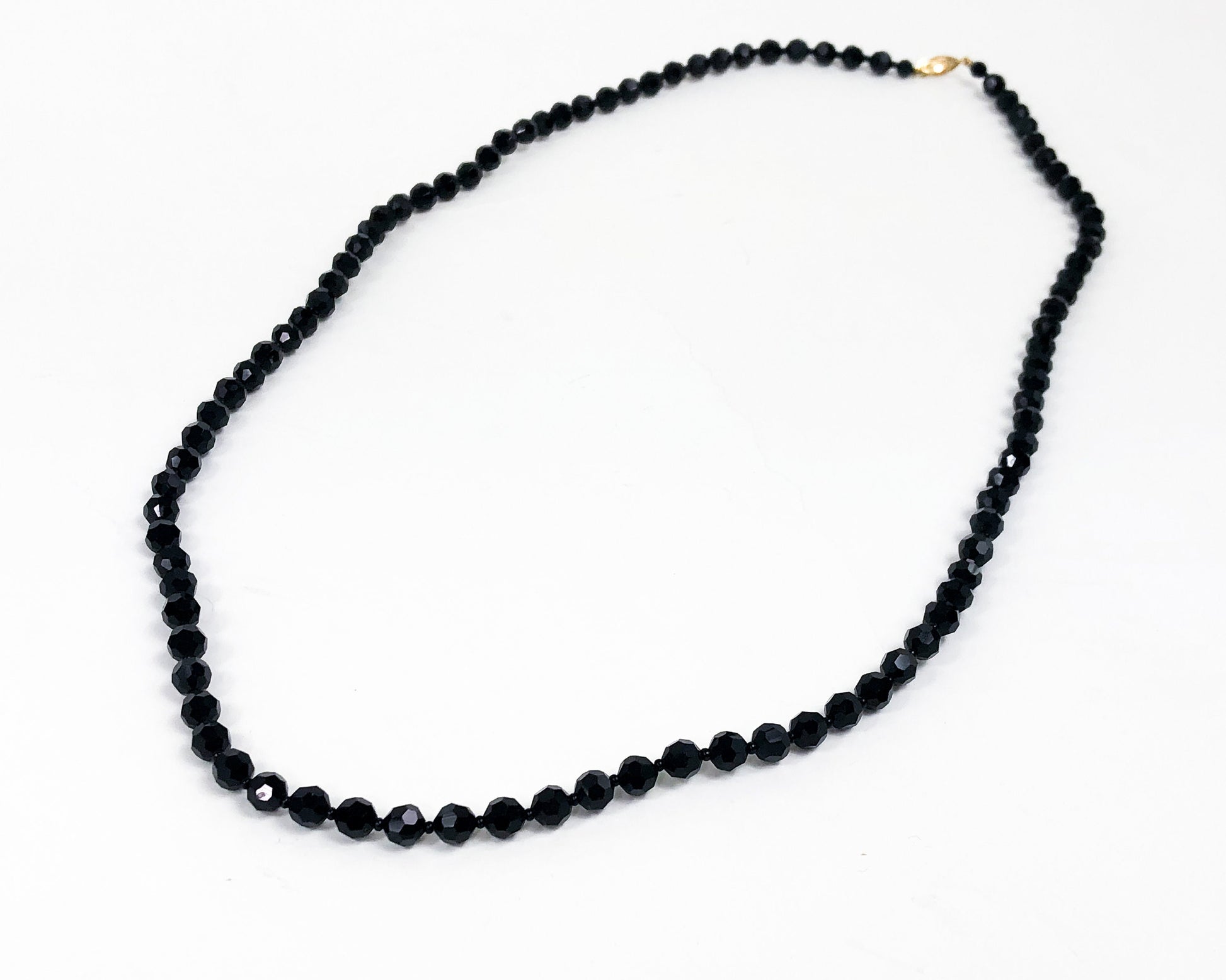 1950s Black Glass Necklace | 50s Black Faceted Glass Necklace | Black Glass Rope