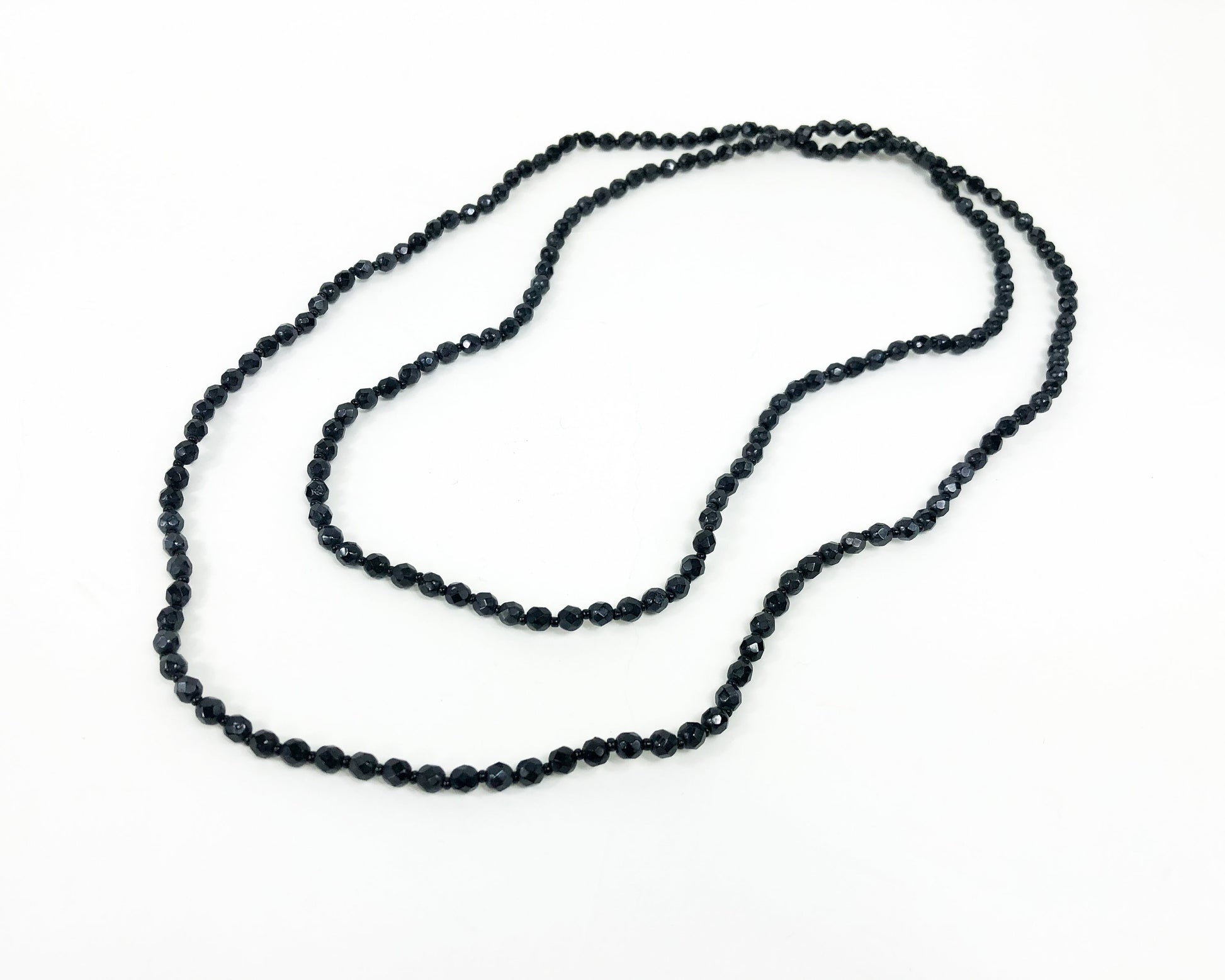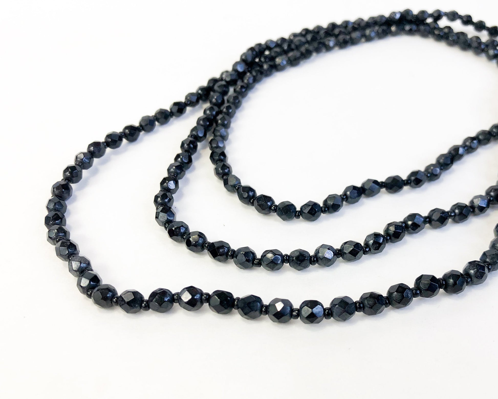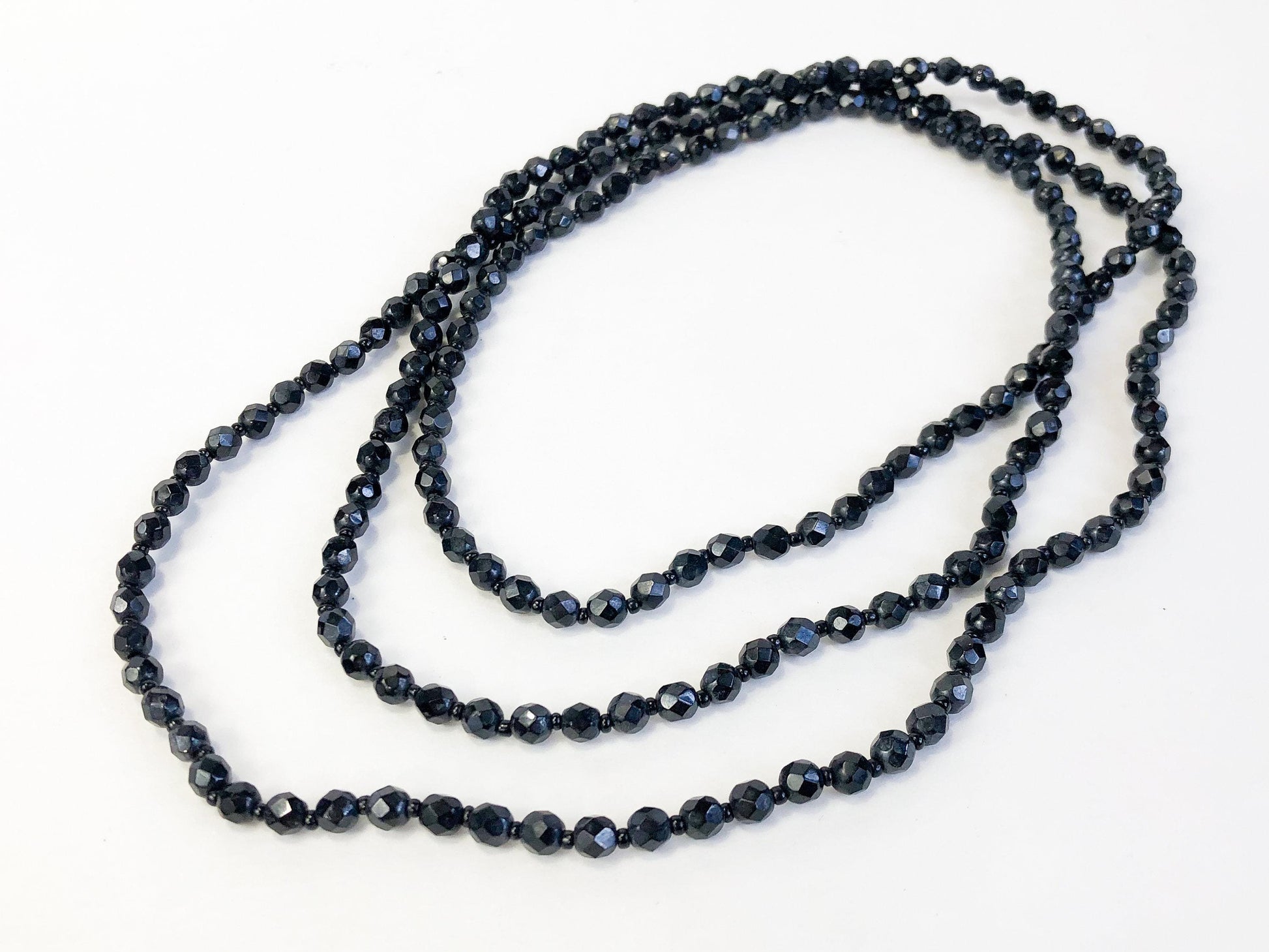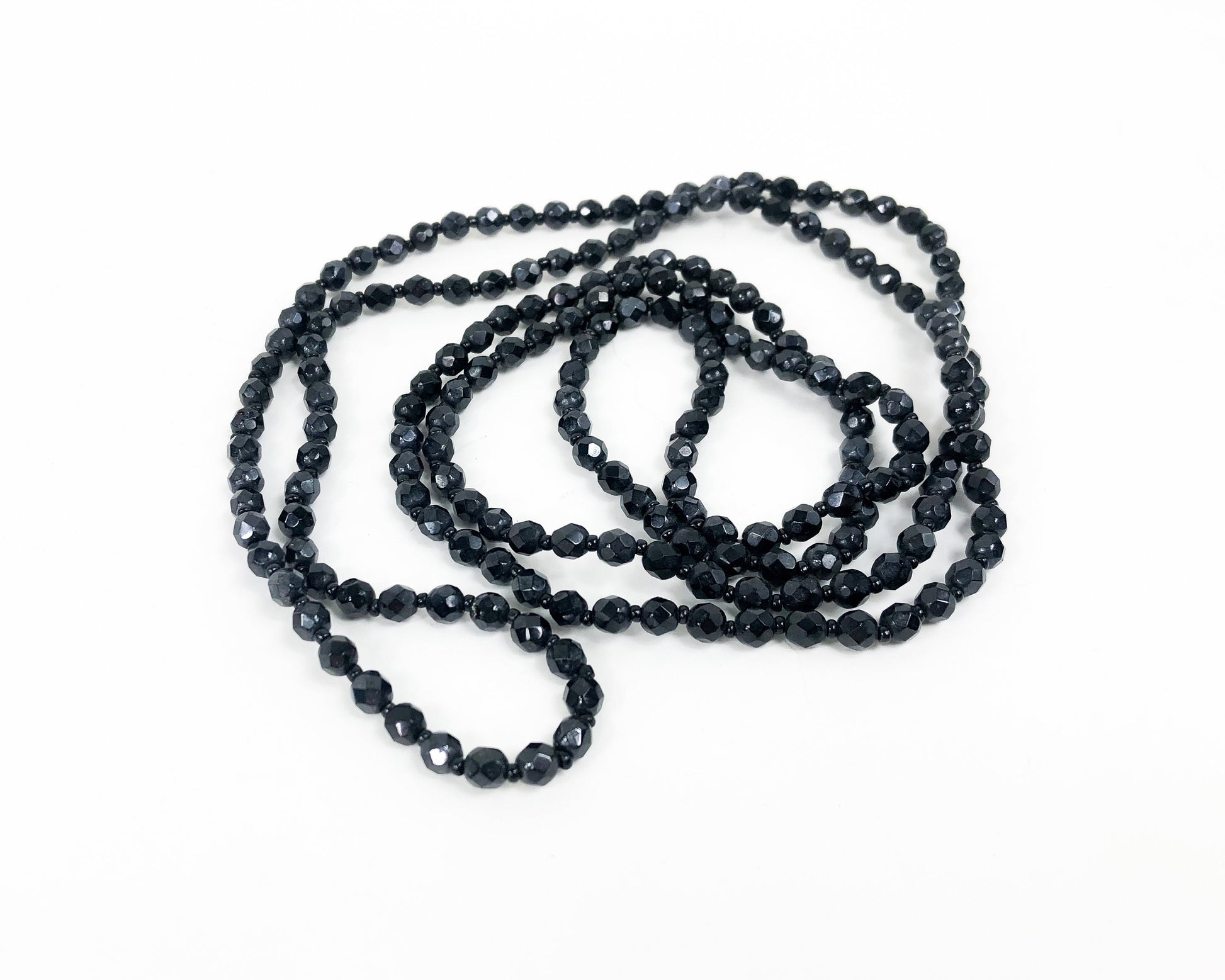 1960s Glass Beaded Necklace | 60s Black Faceted Glass Bead Rope