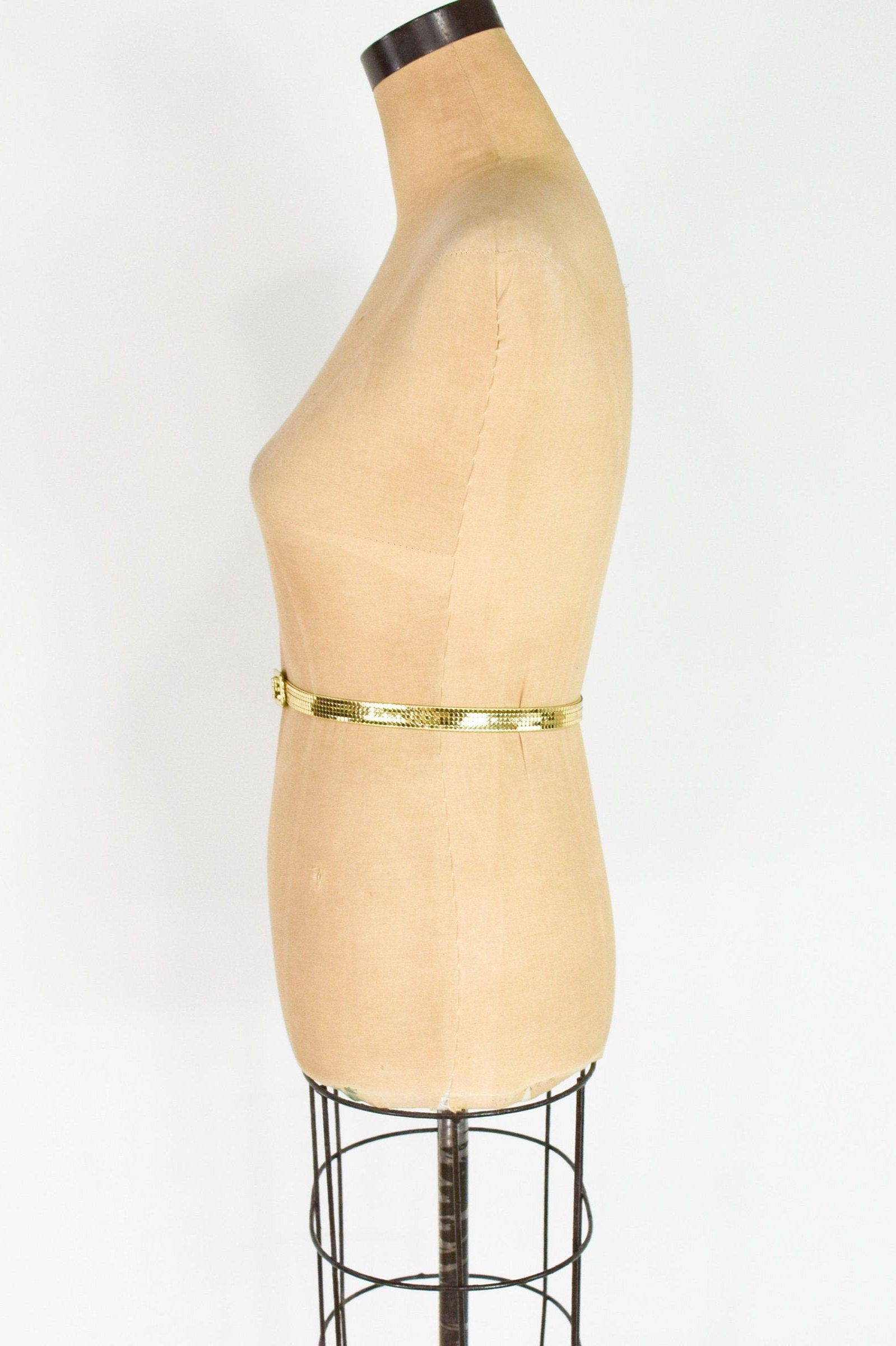 1980s Gold Mesh Skinny Belt | 80s Gold Leather & Mesh Belt