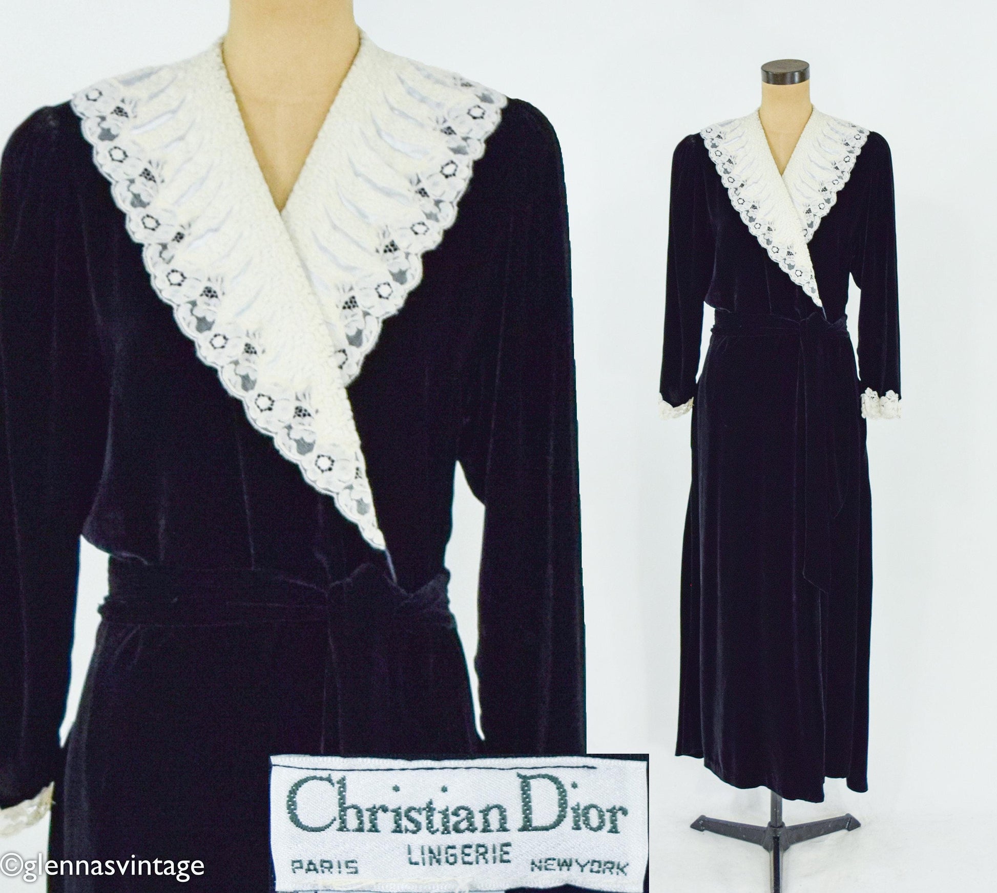 Christian Dior 1980s Black Velvet Dressing Gown, Medium