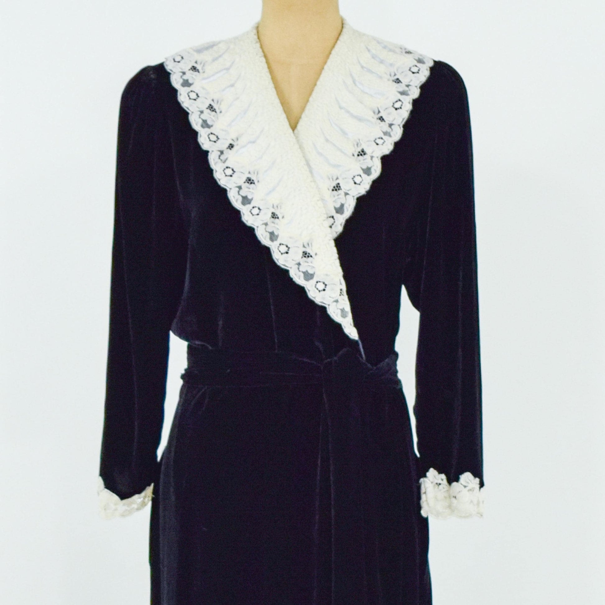 ~ 1980s black velvet robe dressing gown