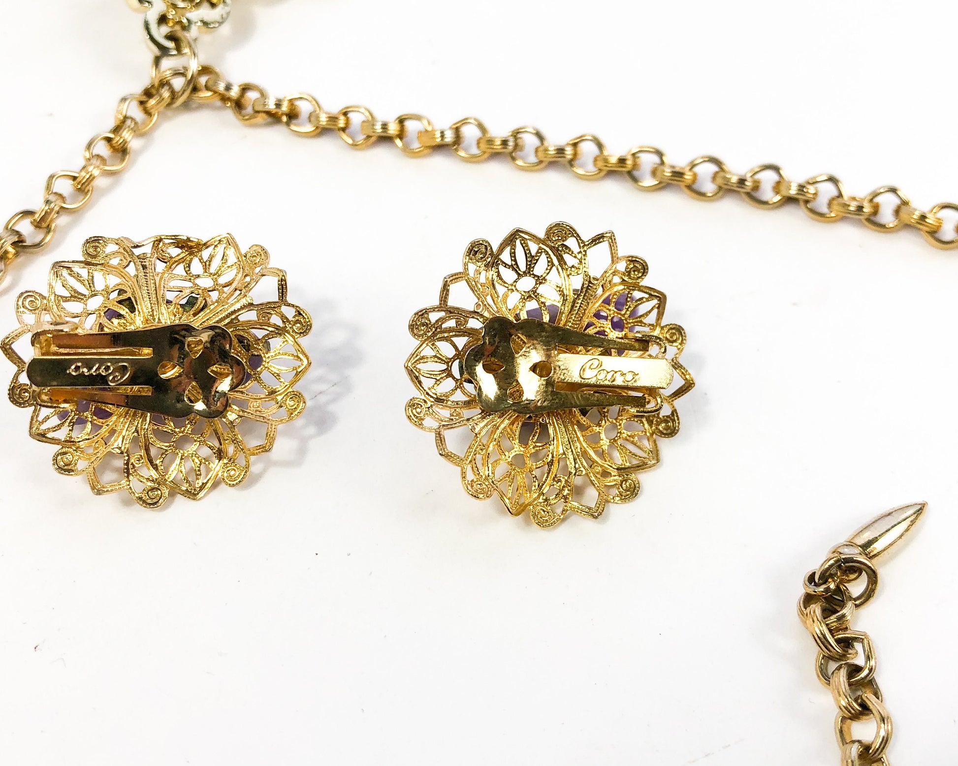 Coro | 1960s Gold & Purple Necklace Earrings Set | 60s Purple Agate Necklace Set | Coro