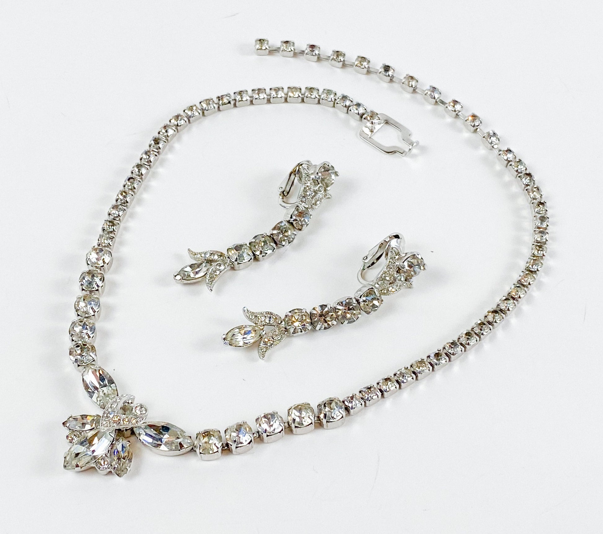 Eisenberg | 1950s Rhinestone Necklace & Earrings Set | 50s Rhinestone Pendant Necklace | Matching Earrings | Eisenberg E